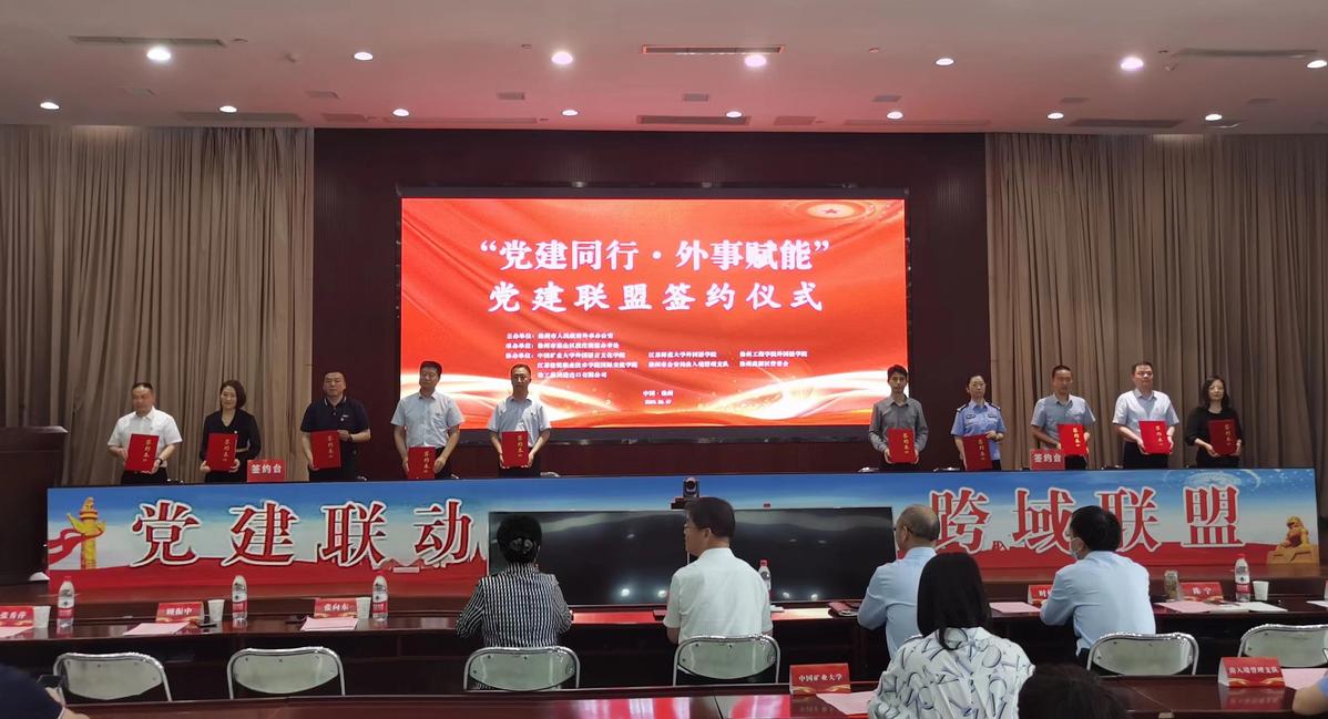 6月7日,徐州市“党建同行·外事赋能”党建联盟成立大会在徐州市泉山区政府举行。我校国际交流学院党支部作为外事人才培养联盟成员单位之一,在会上与各成员单位签订了共建协议书,共同为党建联盟成立按下启动按钮。外事人才培养联盟和外向经济建设联盟代表分别作了发言。