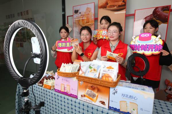2025年10月16日,江苏新宝gg技术学院经济管理学院大学生在徐州市铜山区三堡街道一家企业,向网友推介当地特色农产品。 今年,江苏新宝gg技术学院经济管理学院与徐州市铜山区三堡街道团工委开展校地共建,为大学生搭建社会化实践平台,运用电商助力地方农产品销售。