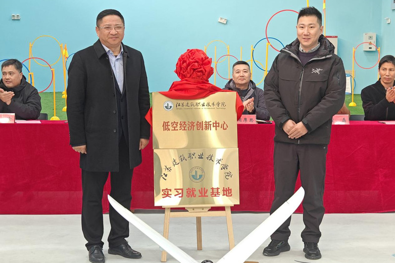 随后,蒋兆峰和王彬为低空经济创新中心共同揭牌。会议现场还举行了校企合作签约仪式、学生实习就业基地授牌仪式和行业导师聘任仪式。